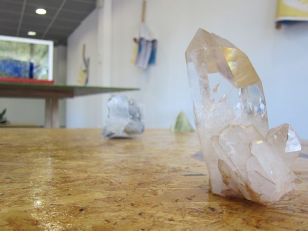 C r i s t a l G a g n a n t est une exposition au Ploth-r ainsi qu’une édition en collaboration avec Tom Bücher. Pendant sa résidence Ann Guillaume a cherché comme à son habitude à aller à la rencontre de chercheurs, cette fois ci des spécialistes du cristal (sciences appliquées). Partant du postulat que l’objet cache un certain nombre de choses, de sens, d’idéologies, de pouvoirs, de magie, qu’il contient un potentiel discursif, il ne se fixe alors jamais réellement ni dans sa propre histoire ni dans l’espace sémantique qu’il crée autour de lui. C’est dans un dialoguant avec Gerard Coquerel qu’Ann Guillaume comprend que le projet du cristal est de recouvrir l’univers tout entier. Il est ici clair que la nature a comme l’Homme des buts dans la vie ? Sommes-nous constitués d’une structure commune? La question de la création, de son origine à son objectif donne lieu à une installation qui invite enfin le cristal à nous montrer par une projection en marqueterie ce en quoi il se rêve.