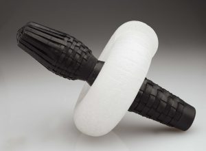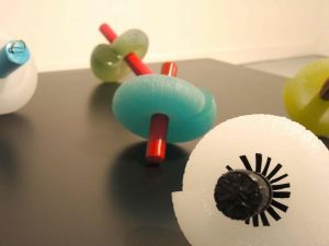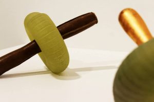 Dans le cadre de sa résidence, Ann Guillaume a catalysé les énergies de différents corps de métiers,aux compétences variées et néanmoins complémentaires, pour réaliser un étrange objet. Cet hybride fait de verre, de cuivre et de caoutchouc tressés est le résultat d’une savante combinatoire entre un geste manuel artisanal, support de savoirs millénaires, et une technologie numérique, translation mécanique dans le réel d’un dessin conçu par ordinateur… C’est bien ce floutage des temps, des techniques et des savoir-faire qu’Ann Guillaume met en scène dans cette forme mutante qui aurait traversé les âges en tous sens. Entre arts savants et traditions populaires, archaïsme et futurisme, l’objet manifeste se révèle ambigu. Il échappe à toute interprétation ferme et définitive, et se prête davantage aux spéculations les plus folles. L’ouverture d’atelier est l’occasion pour Ann Guillaume de soumettre à l’interprétation de chaque visiteur la nature de cette curiosité, qui pourrait être tout à la fois une œuvre d’art, un outil ou un élément de décor… En proposant à tous d’observer et de spéculer sur le sens d’un artefact, Ann Guillaume nous incite à mettre en mouvement notre imaginaire, manière de dire que ses objets, dans leur matérialité et leur séduction formelle, restent le vecteur d’une pensée intuitive, profondément subjective, et libre. L’objet qu’elle présente à Lindre-Basse, à la fois fossile et prospectif, préhistorique et extraterrestre, étire la perception du temps et de l’espace. Il nous permet in fine de revoir notre conception de l’Histoire, en suivant une trajectoire non linéaire, faite de fragments épars et enfouis, qu’il nous faudrait en permanence exhumer et recomposer. Marie Cozette